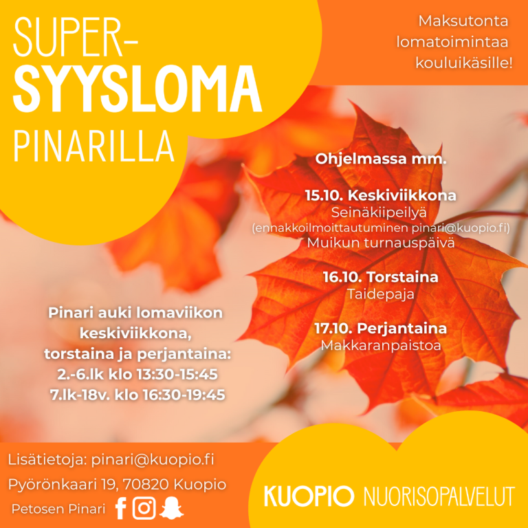 Lasten ja nuorten Supersyysloma Kuopiossa 13.-19.10.2025!