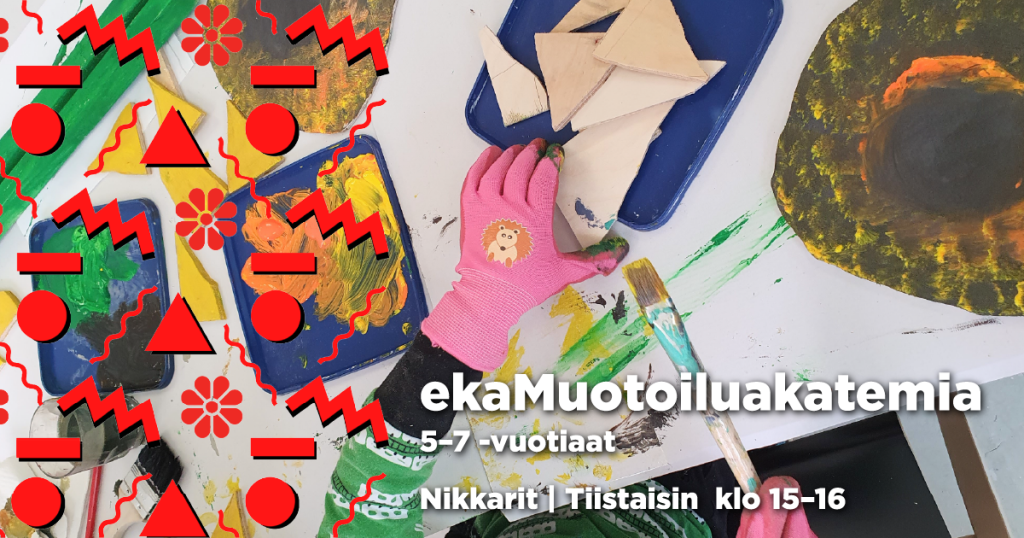 ekaMuotoiluakatemian ryhmät 5–7-vuotiaille kokoontuvat tiistaisin klo 15–16 (Nikkarit) ja klo 16–17 (Näppärät) osoitteessa Piispankatu 8.