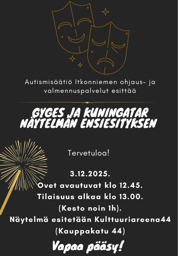 Autismisäätiön Itkonniemen ohjaus-ja valmennuspalvelut esittää näytelmän Gykes ja Kuningatar.