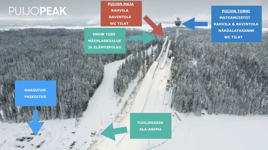 - Tornin näkäalatasanne avoinna ja matkailualueen keskusaukiolla PUIJO -kirjaimet kuvauskohde