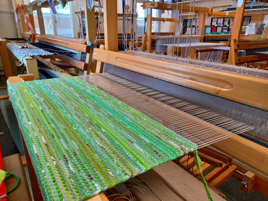 Käsillä ry:n tiloissa on 15 kangaspuut, joihin voit ajan varaamalla tulla ohjatusti kutomaan mattoja, pyyheliinoja, huopia, huiveja…