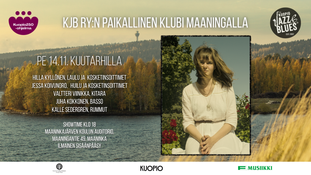 Kuopio Jazz & Blues ry:n paikallinen klubi lähtee Kuopion 250-vuotisjuhlaviikkojen kunniaksi maakuntakiertueelle. Perjantaina 14.11. Maaninkajärven koulun auditorion lavalla nähdään KuutarHilla.