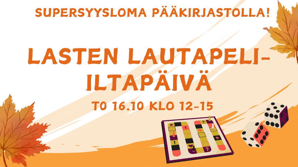 Kuopion pääkirjastolla järjestetään supersyysloman kunniaksi lautapeli-iltapäivä lapsille ja nuorille!