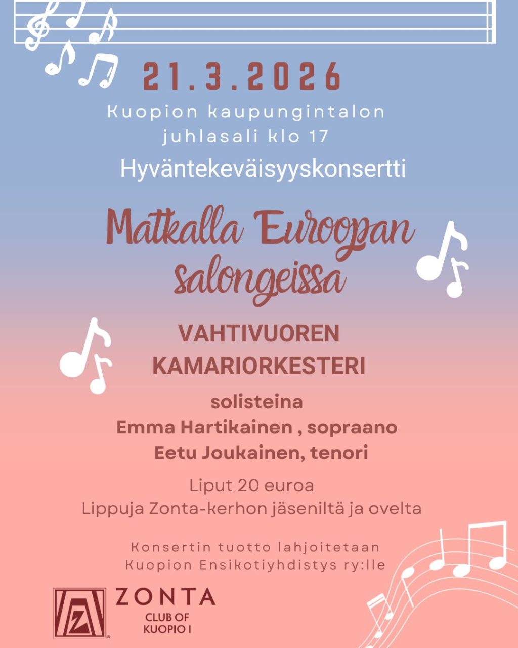 Konsertin järjestää Zonta-kerho Kuopio I
