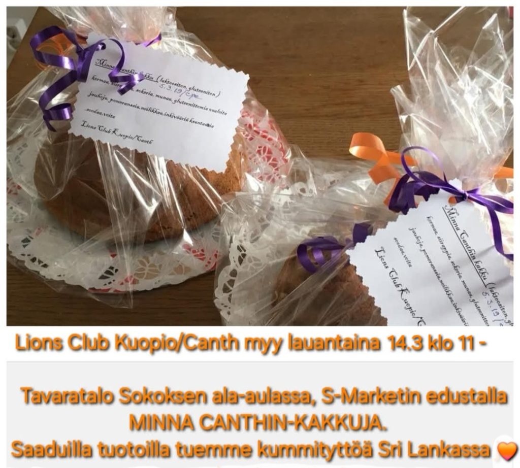 Lions Club Kuopio/Canth myy Minna Canthin-kakkuja lauantaina 14.3.2026 klo 11 alkaen.