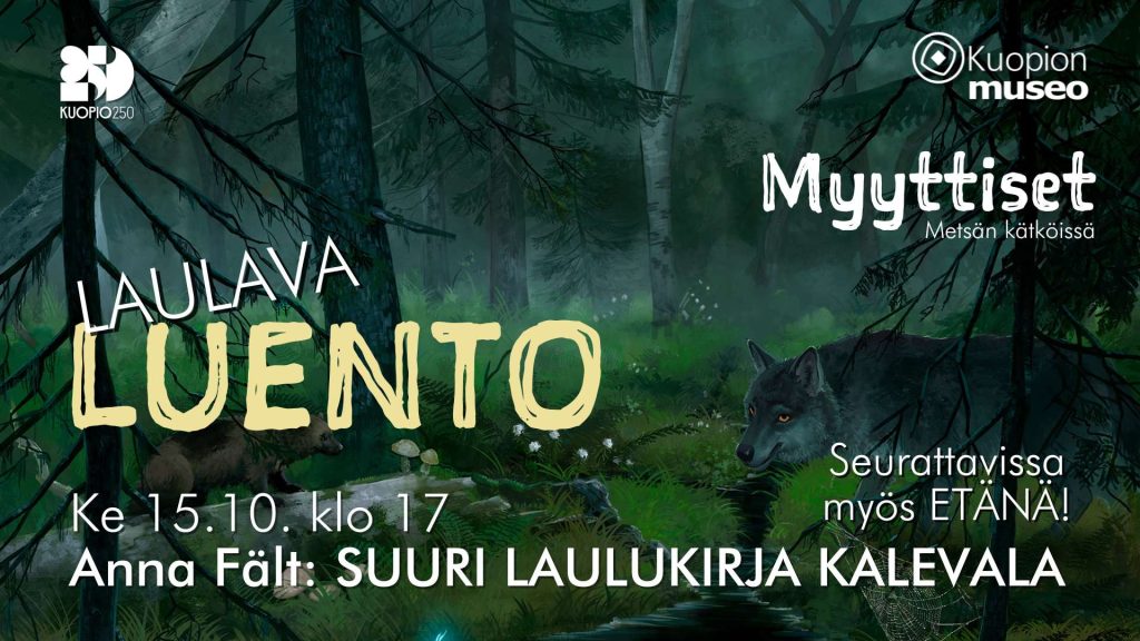 Ke 15.10. klo 17 Anna Fält: Laulava Luento – Elias Lönnrot sekä Kalevalan laulut ja loitsut. (Vapaa pääsy.)