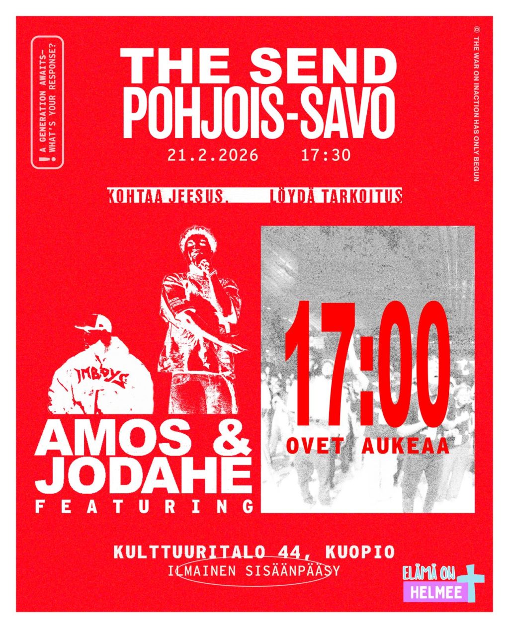 The Send Pohjois-Savo järjestetään 21.2.2026 Kulttuuriareena 44:ssa yhdessä Elämä on helmee -tapahtuman ja monien seurakuntien kanssa. Vapaa pääsy.