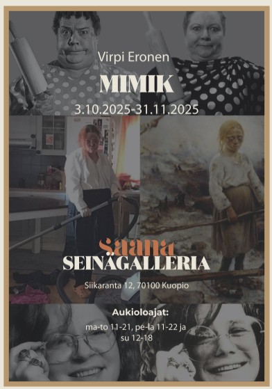 ”MIMIK-tunne yhteys” on viinijärveläisen monitaiteilija Virpi Erosen kaksoiskuvista koostuva valokuvanäyttely, jossa valokuvaaja asettaa itsensä klassikkomaalausten ja julkkisten kanssa samaan tunnetilaan ja maisemaan.